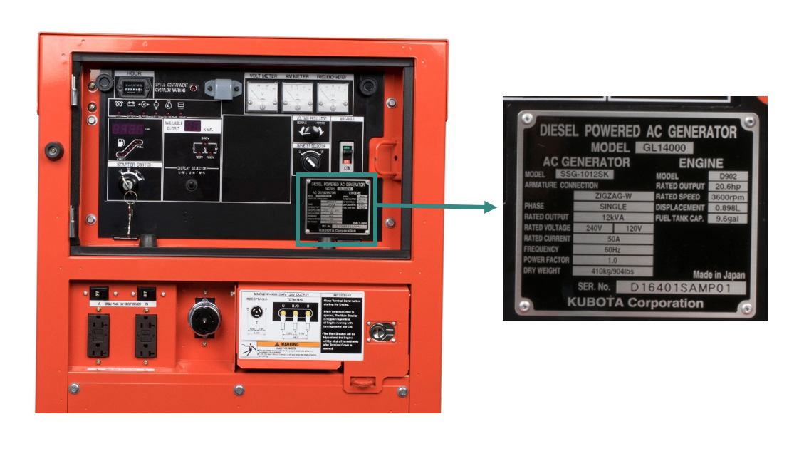 Is it time to service your Kubota branded generator? The best way to ensure you receive the quickest, most efficient service and the correct service parts is to obtain its serial number and model name. This helps your authorized Kubota dealer’s factory-trained technicians differentiate by model.